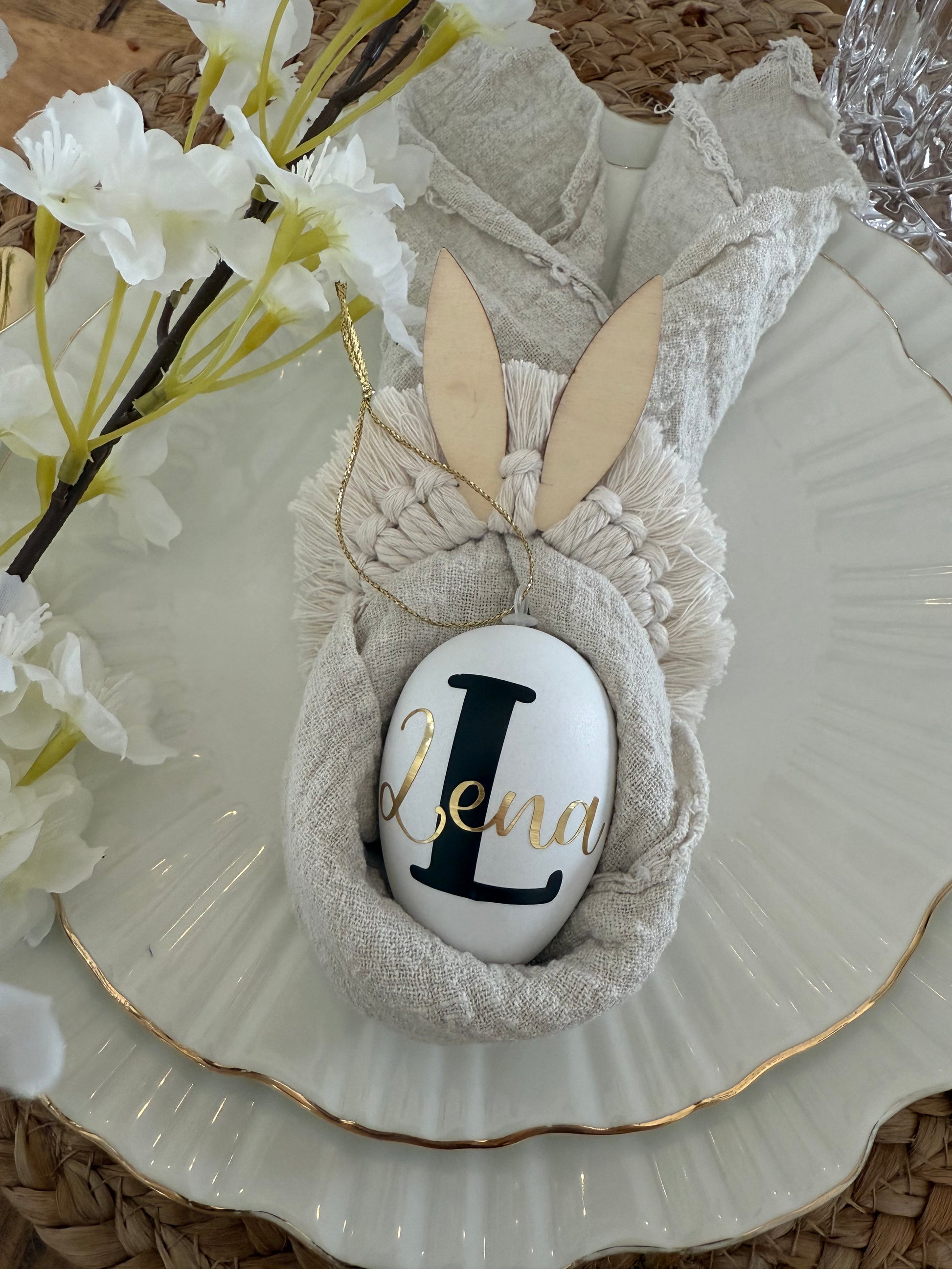 Verleihe deiner Osterdeko eine besondere Note mit personalisierbaren Ostereiern zum Aufhängen oder als Namensplatzhalter auf dem Teller. Ob am Osterstrauch, als Hingucker im Osternest oder stilvoll auf dem Esstisch – diese liebevoll gestalteten Eier sind einzigartig und festlich.